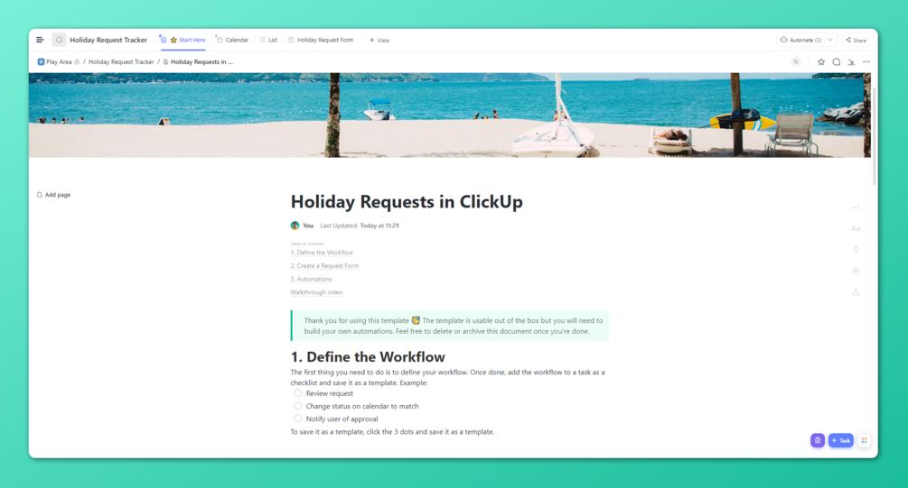 Using ClickUp and want to handle vacation requests from your team? Now you can with this premade form and template 🌴